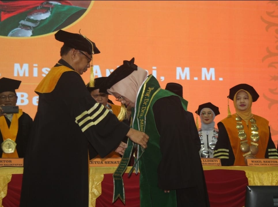Yang kedua, dikukuhkannya seorang dosen Fakultas Ekonomi dan Bisnis (FEB) Uniba sebagai guru besar Uniba. Dia adalah Prof Dr Dra Hj Misna Ariani, MM. Boleh dibilang dia wanita pertama kelahiran Balikpapan yang meraih gelar guru besar bidang Manajemen Sumber Daya Manusia.