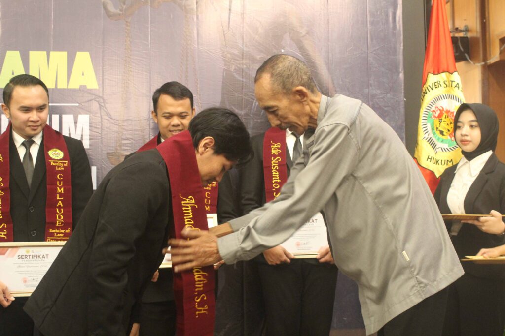 Suasana haru dan bangga menyelimuti ruangan ketika Kaprodi Ilmu Hukum, Rinto, SH., MH., membacakan nama lima peserta yudisium terbaik. Mereka adalah Adie Susanto dengan IPK 3.94, Ibnu Al Razak dengan IPK 3.94. Ilham Yudiawan dengan IPK 3.94. Nanang Kuswan Kusdiyantoro dengan IPK 3.95, dan Ahmad Hafiuddin meraih IPK tertinggi 3.96.